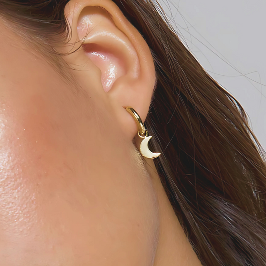 AHORRAR [porcentaje]Pendientes de aro redondos de plata de ley 925 con símbolo de luna creciente