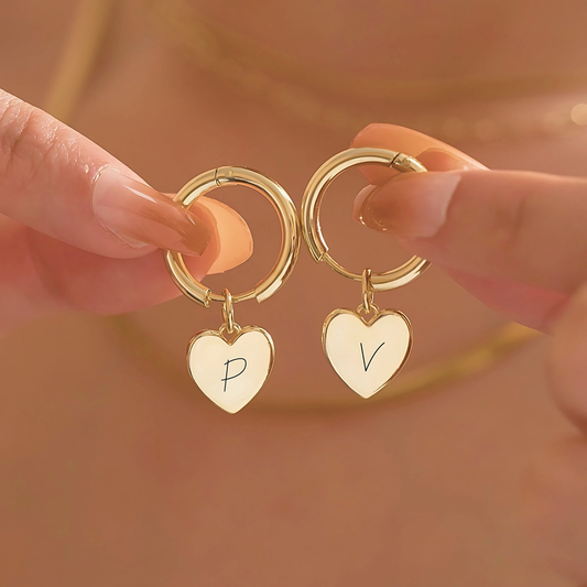 AHORRAR [porcentaje]Pendientes dobles con letra grabada en forma de corazón en plata de ley 925