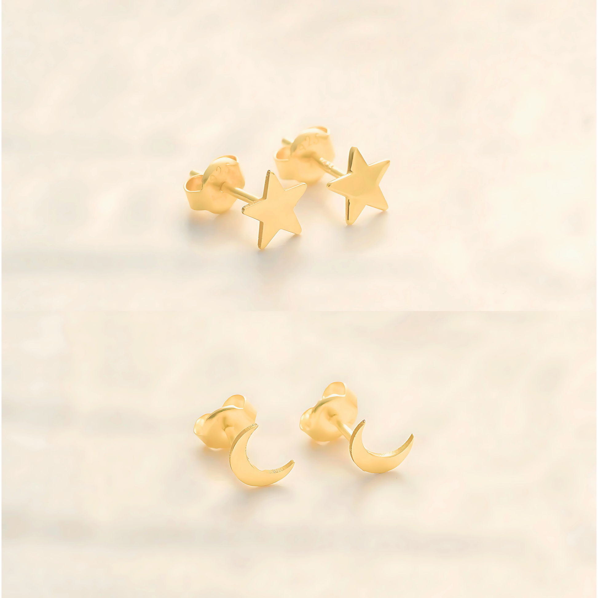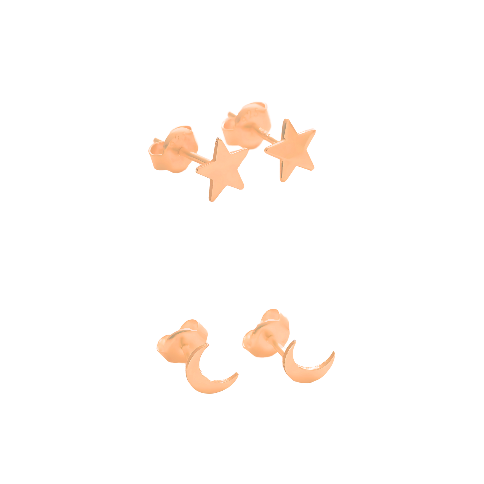 925 Sterling Silver Moon Star Stud Double Earrings